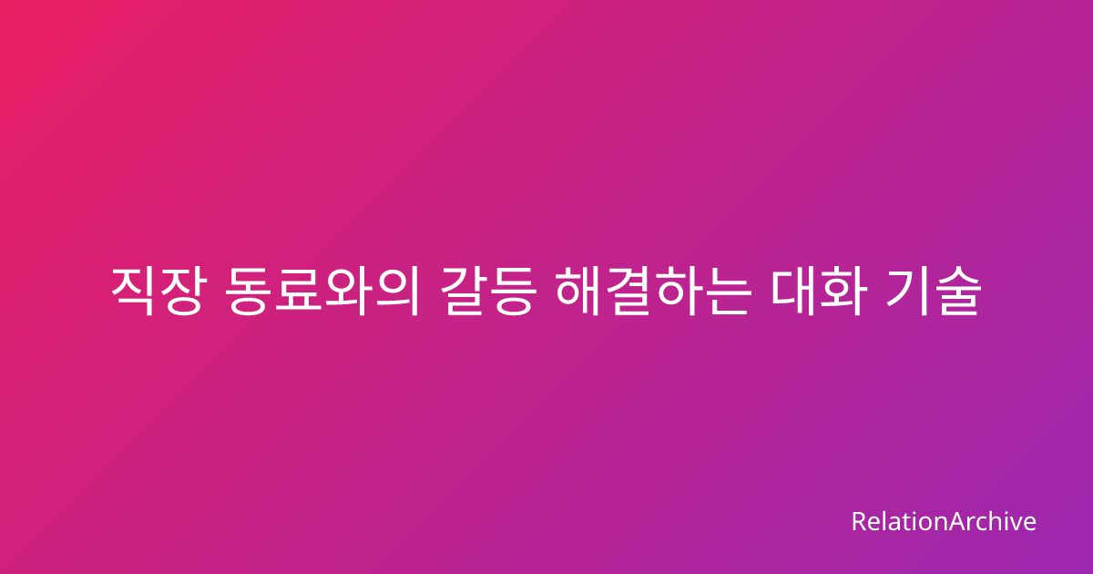 직장 동료와의 갈등을 슬기롭게 해결하는 실전 대화 기술과 단계별 접근법을 상황별 사례와 함께 정리했습니다. 감정 조절부터 해결책 도출까지 체계적으로 안내해드려요.
